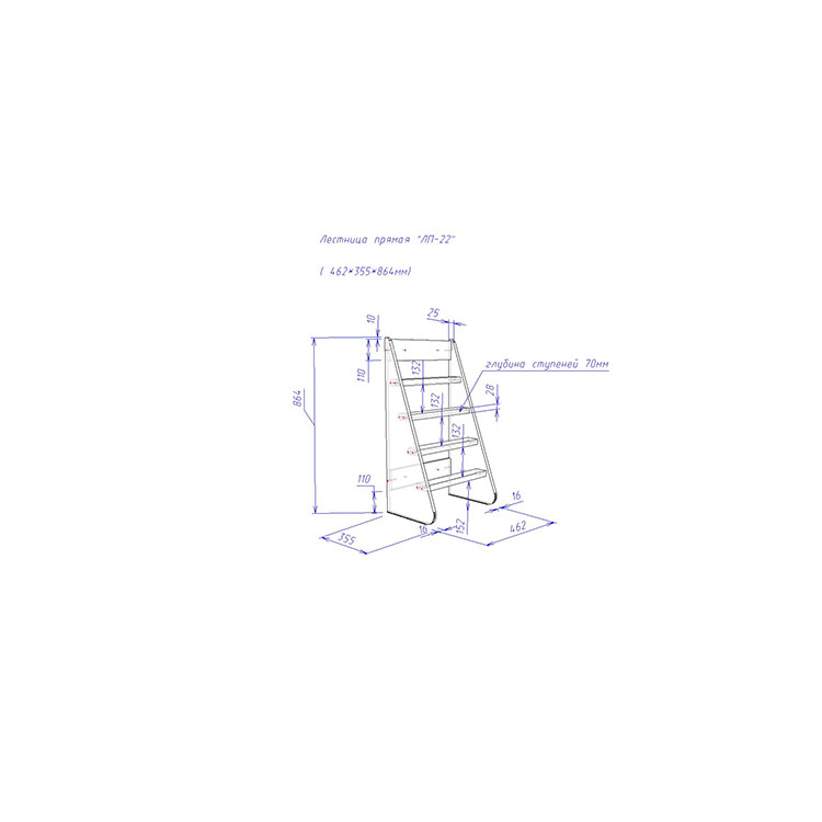 Прямая четырехступенчатая лестница белого цвета,сочетается с кроватями-чердаками небольшой высоты,того же цвета и стиля.