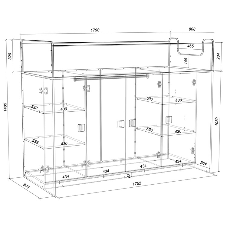 Под спальным местом кровати Легенда 43.5 расположен огромный 4-х створчатый шкаф.